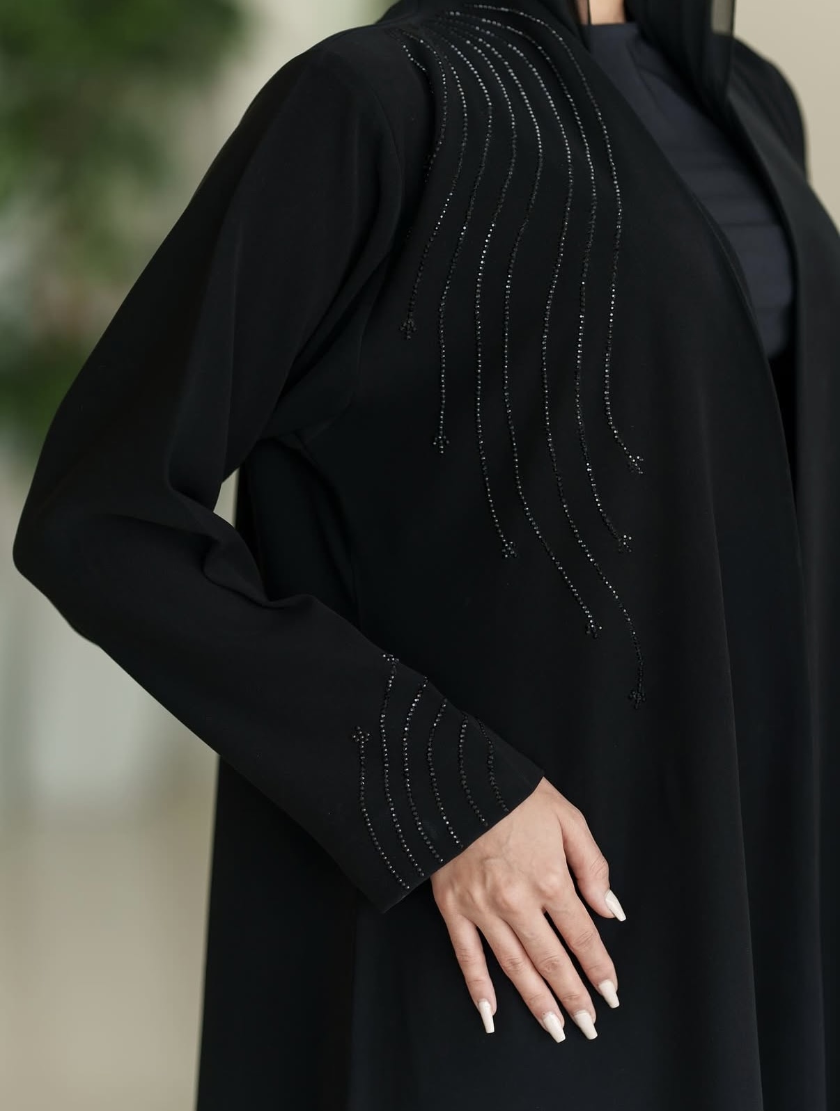 عباة مزينة بالفصوص السوداء