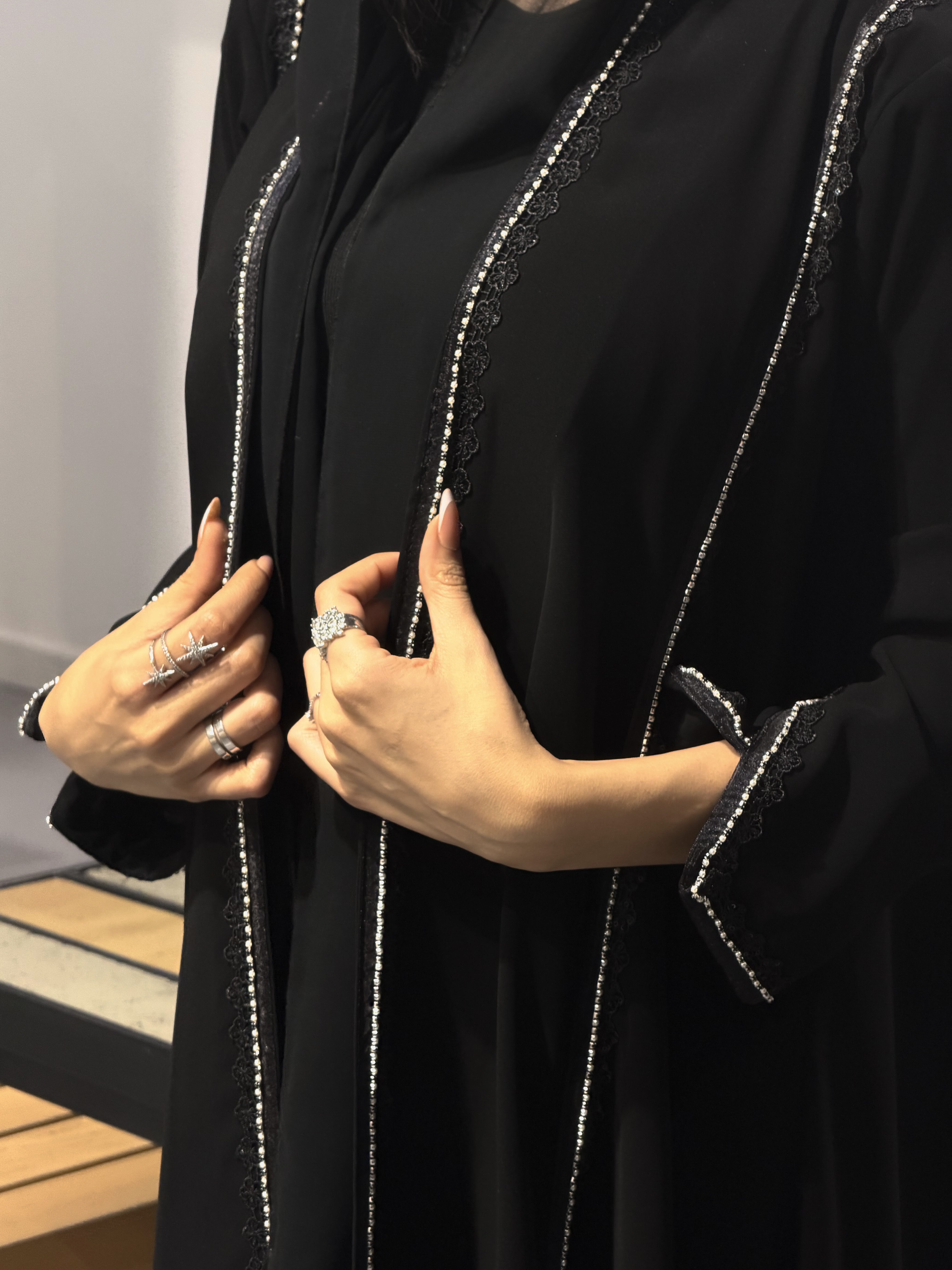 عباية الدانتيل الناعمة مطرزة باللون الذهبي