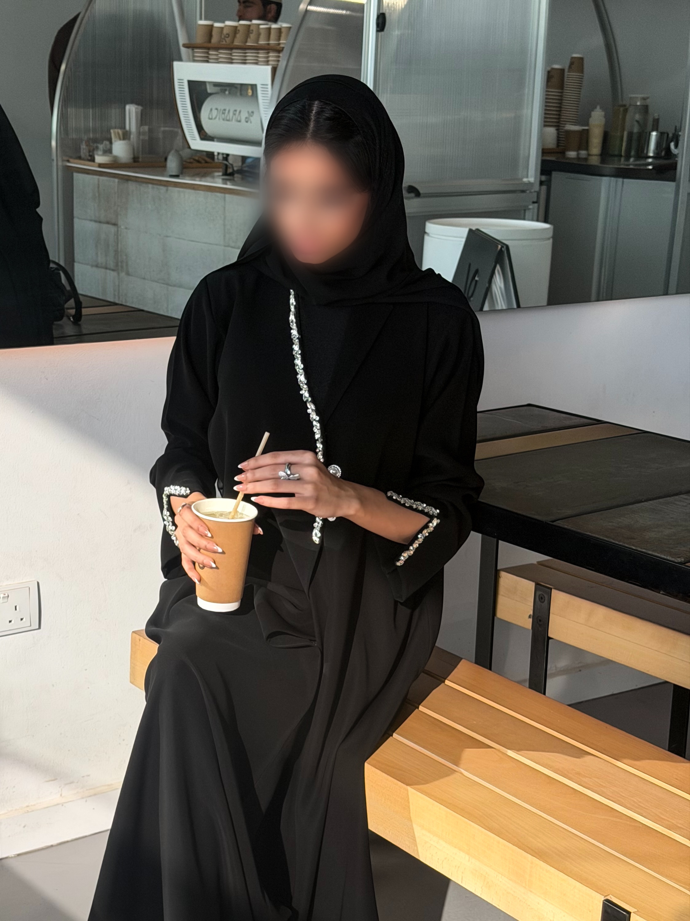عباية مزينة بكرستال أبيض تصميم راقٍ بلمسة فخامة ناعمة، يمنحك إطلالة مميزة .